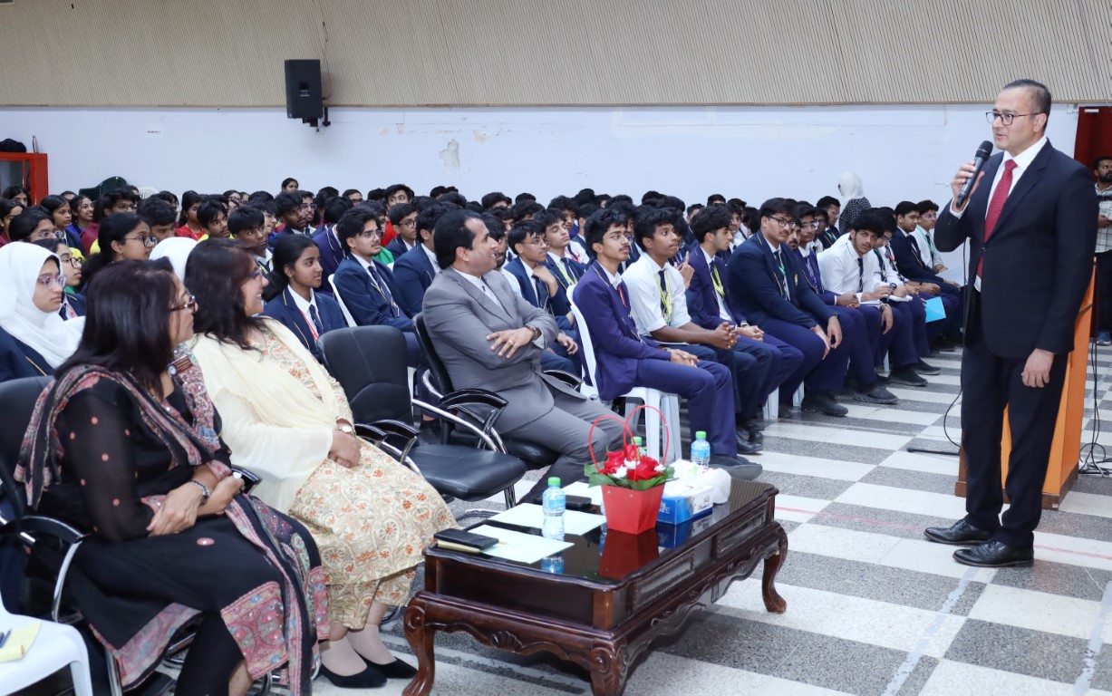 Setting an engaging tone, Mr. Yusuf Chorghay began his talk with light humor, connecting instantly with the students. He emphasized that real-life experience holds greater value than information easily available online, and urged students to think carefully about their purpose and goals when choosing career paths.